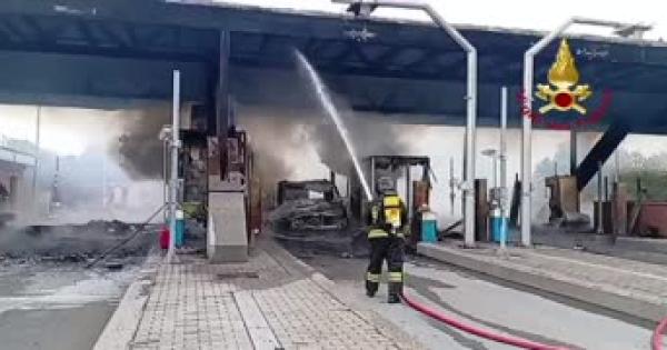 In fiamme casello sull'A21 a Brescia Sud, nessun ferito In fiamme casello sull'A21 a Brescia Sud, nessun ferito