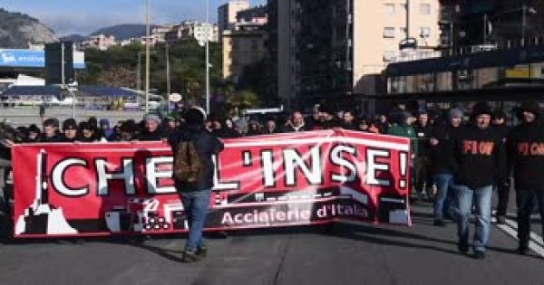 Ex Ilva, il corteo degli operai allo stabilimento di Genova Cornigliano Ex Ilva, il corteo degli operai allo stabilimento di Genova Cornigliano