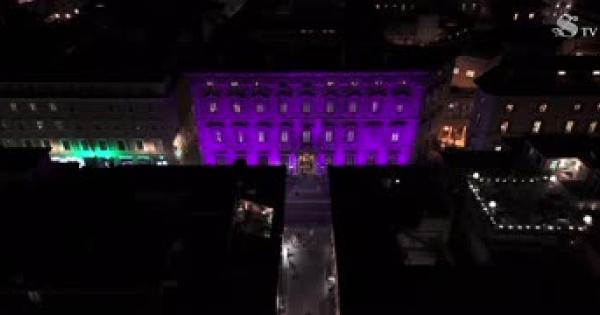 La facciata di Palazzo Madama illuminata di viola contro il tumore al pancreas La facciata di Palazzo Madama illuminata di viola contro il tumore al pancreas