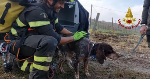 Cane bloccato per tre giorni nel Forlivese, salvato dai Vigili del fuoco Cane bloccato per tre giorni nel Forlivese, salvato dai Vigili del fuoco