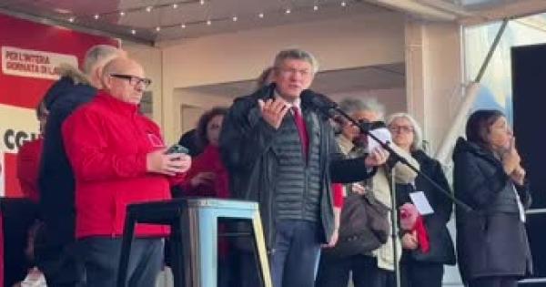 Il segretario Cgil alla conclusione della manifestazione in piazza del Carmine