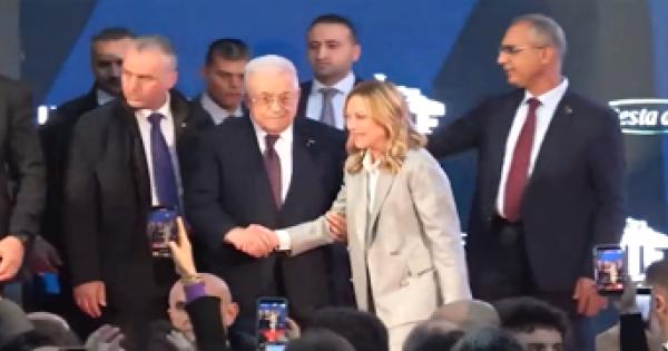 Roma, Meloni accoglie Abu Mazen sul palco di Atreju Roma, Meloni accoglie Abu Mazen sul palco di Atreju