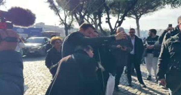 Il leader della Lega non risponde ai giornalisti ma si ferma a lungo per le foto