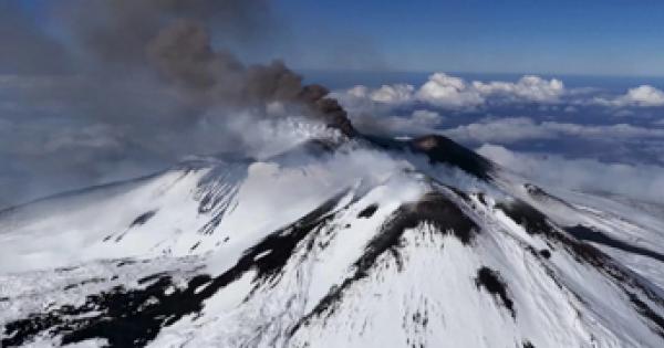 Etna, lo spettacolo dall'alto dell'attivita' vulcanica fra la neve Etna, lo spettacolo dall'alto dell'attivita' vulcanica fra la neve