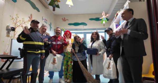 Ha la scopa, ma arriva in Lamborghini... Poi, giochi e dolci ai bambini ricoverati