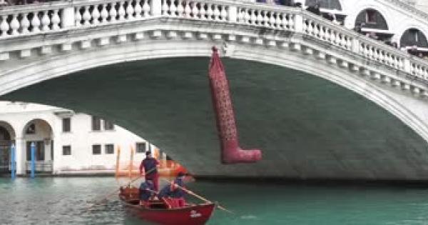 A Venezia la regata delle Befane sfida neve e vento. Una maxi calza appesa sul ponte di Rialto A Venezia la regata delle Befane sfida neve e vento. Una maxi calza appesa sul ponte di Rialto