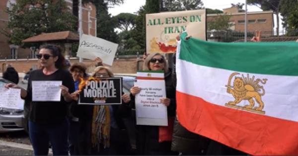 Roma, la protesta della comunita' iraniana davanti all'ambasciata Roma, la protesta della comunita' iraniana davanti all'ambasciata