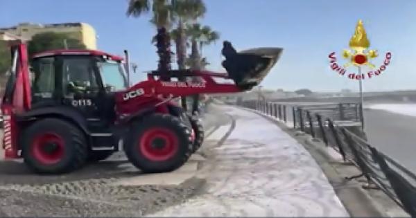 Vigili del fuoco al lavoro con ruspe ed escavatori a Catanzaro Lido