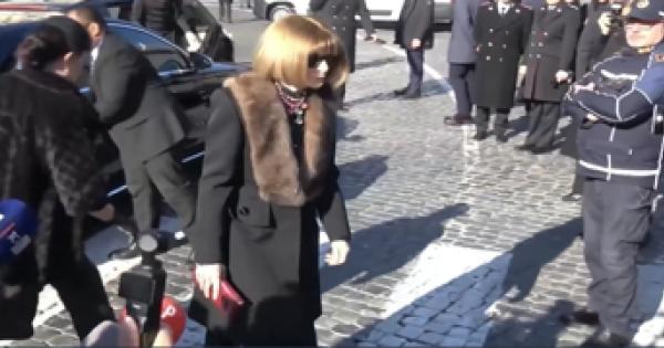 L'arrivo di Anna Wintour e Anne Hathaway ai funerali di Valentino L'arrivo di Anna Wintour e Anne Hathaway ai funerali di Valentino