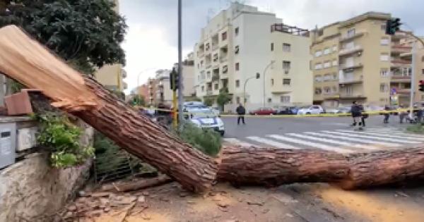 Cade un grosso albero in strada a Roma, colpito un autobus Cade un grosso albero in strada a Roma, colpito un autobus