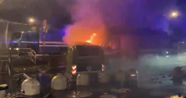 Torino, corteo per Askatasuna: blindato della polizia dato alle fiamme Torino, corteo per Askatasuna: blindato della polizia dato alle fiamme