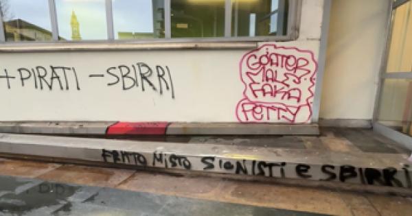 Comparse a Palazzo Nuovo in occasione del corteo per Askatasuna di sabato scorso