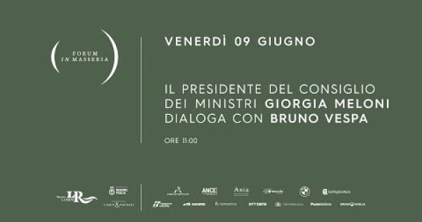 MANDURIA - Seguite con noi a partire dalle 11 la diretta della manifestazione Forum in masseria in programma fino a domenica nella tenuta di proprietà del giornalista Bruno Vespa a Manduria. Ospite là premier Giorgia Meloni.
