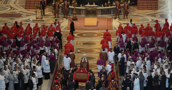 Il feretro del Papa, portato a braccio dai sediari, è uscito dall’Arco delle Campane quindi in Piazza San Pietro per l'omaggio dei fedeli. Prima il silenzio, poi, i fedeli in Piazza San Pietro, hanno accolto il passaggio del feretro del Papa con un applauso.
