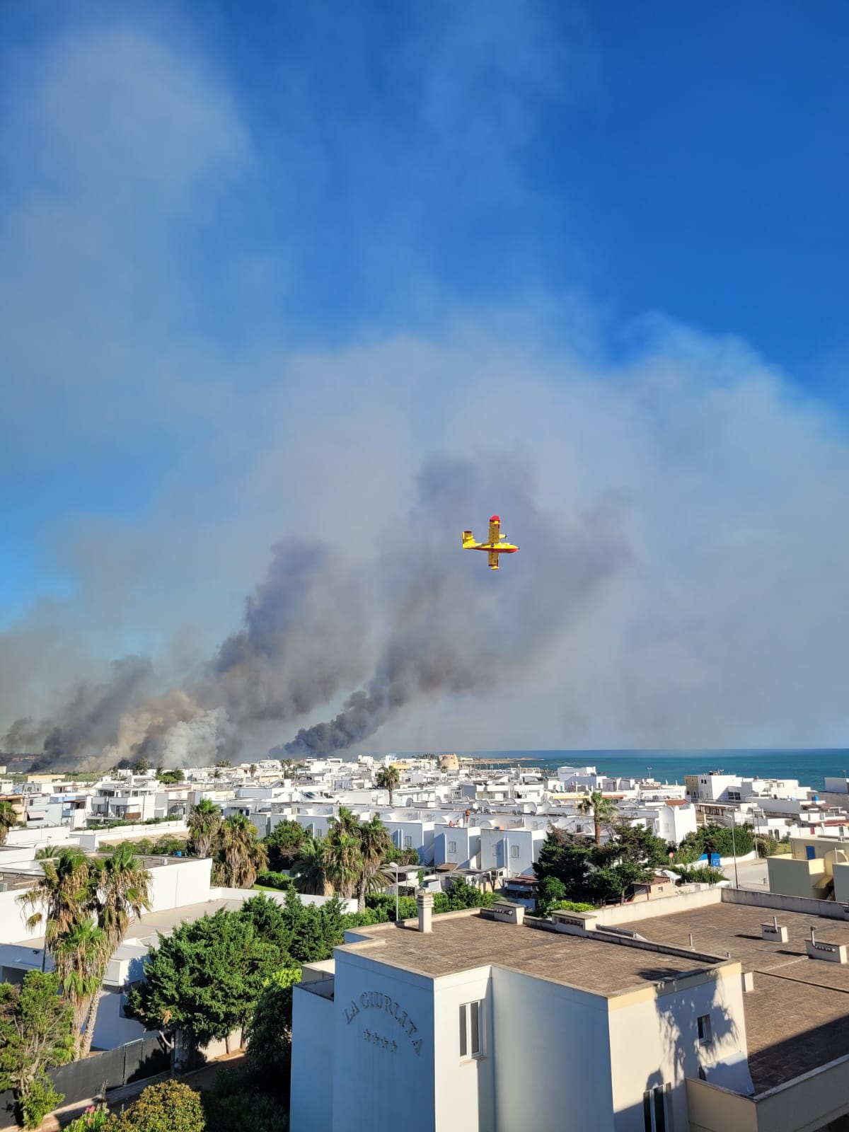 Si teme che il fronte del fuoco, alimentato dal forte vento, possa avanzare velocemente verso la zona dei villaggi turistici. Senza sosta le operazioni dei vigili del fuoco nel Sud per la lotta e il contrasto agli incendi boschivi.