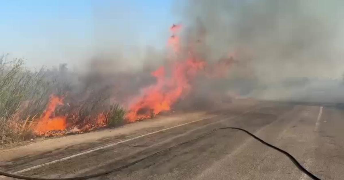 Nel rogo sono andati distrutti due camion, un’automobile e alcuni pannelli solari installati nell’area. Una densa colonna di fumo nero era visibile a chilometri di distanza.