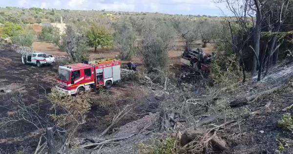 Sul posto i carabinieri di Tricase e di Salve e i vigili del fuoco. In arrivo un'autobotte da Gallipoli e una gru da Lecce per recuperare l'automezzo.