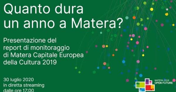 Il Report è suddiviso in sei sezioni: vivacità culturale, accesso alla cultura, cittadinanza culturale, identità e immagine del luogo, filosofia e gestione del processo, dimensione internazionale. Su 77 produzioni del 2019, ben 62 (l'80 per cento) sono state originali, scritte, pensate, realizzate per l’anno da Capitale Europea della Cultura. La Fondazione Matera Basilicata 2019 ha co-finanziato i progetti dei Project Leader per un importo complessivo pari a 5.572.000 euro. Nel corso del 2019 sono stati venduti 74.424 Passaporti, di cui quasi un terzo (28,2 per cento) a residenti in Basilicata, circa la metà (il 40%) è stato venduto invece ai visitatori ed il 20 per cento a studenti e giovani. Il budget complessivo per il programma culturale della Capitale Europea della Cultura per il periodo (2015-2020) ha raggiunto la quota di poco più di 50 milioni di euro, il 94 per cento dei quali provenienti da finanziamenti pubblici e il sei per cento provenienti da privati. Ulteriori 4,87 milioni di euro sono stati destinati dal Governo alla riqualificazione e all’allestimento della Cava del Sole come luogo per arti performative.