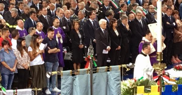 Funerali pubblici ad Andria per 14 delle 23 vittime dell'incidente ferroviario ad Andria. Presenti le istituzioni: il capo dello Stato Sergio Mattarella, la presidente della camera Laura Boldrini (video Calvaresi).