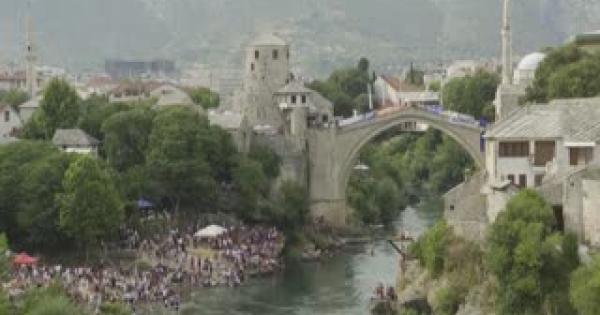 Bosnia, gara di tuffi dal Ponte vecchio di Mostar, voli di 26 metri Bosnia, gara di tuffi dal Ponte vecchio di Mostar, voli di 26 metri
