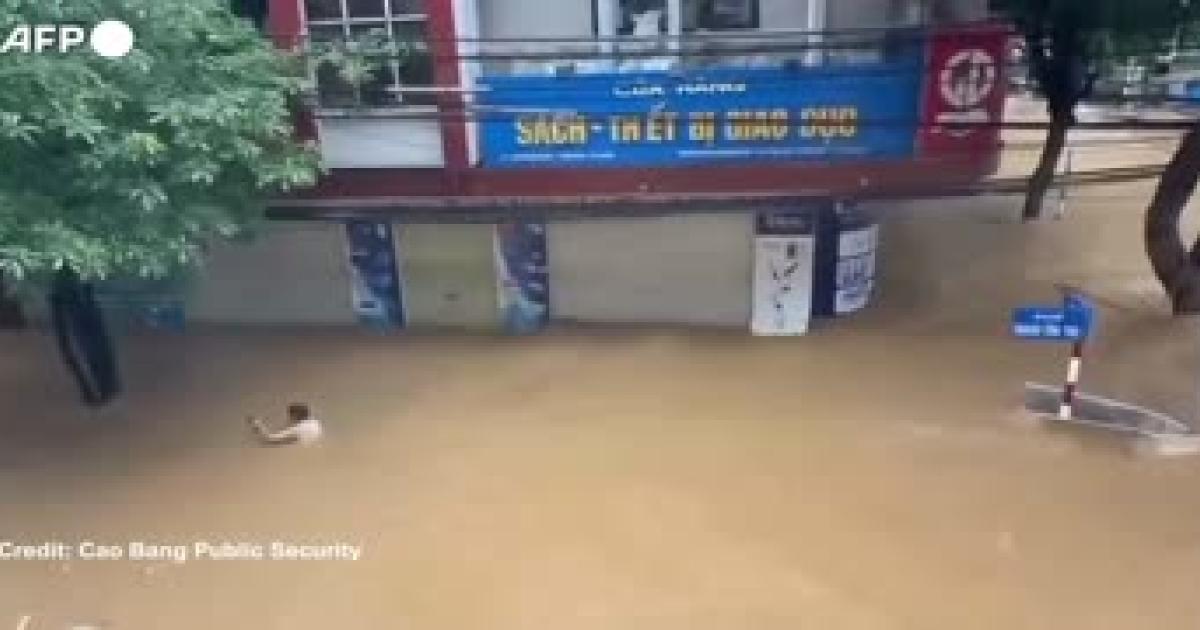 Inondazioni record in Vietnam, salvato uomo aggrappato a un albero