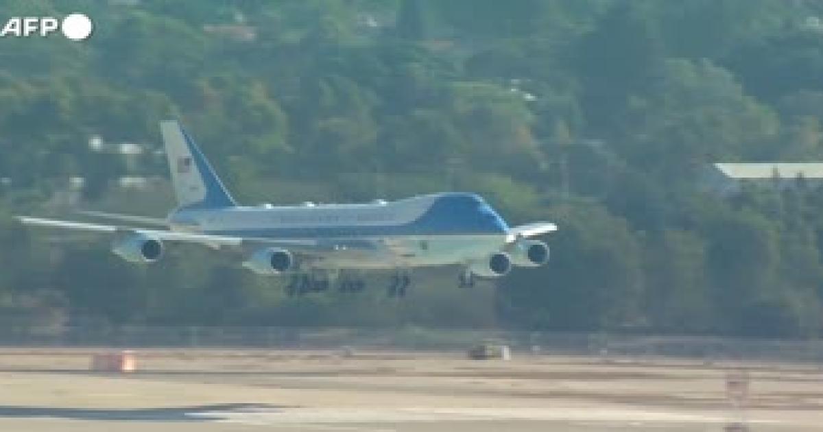 Il presidente scende dall'Air Force One accolto da Herzog e Netanyahu
