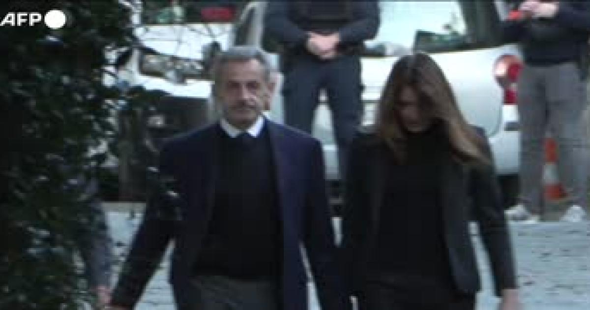 Sarkozy mano nella mano con la moglie Carla Bruni fino al carcere Sarkozy mano nella mano con la moglie Carla Bruni fino al carcere