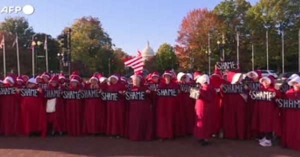 Protesta a Washington, manifestanti con mantelli rossi ispirati a 'The Handmaid's Tale' Protesta a Washington, manifestanti con mantelli rossi ispirati a 'The Handmaid's Tale'