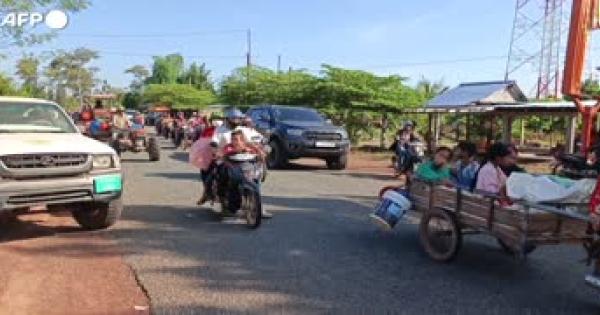 Gli abitanti dei villaggi cambogiani fuggono dalla regione di confine