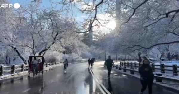 New York si veste di bianco, e a Central Park c'e' anche chi scia New York si veste di bianco, e a Central Park c'e' anche chi scia