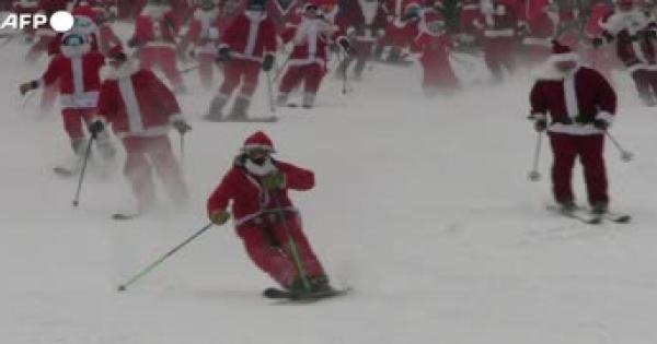 Stati Uniti, centinaia di Babbi Natale sciano sulle piste del Maine Stati Uniti, centinaia di Babbi Natale sciano sulle piste del Maine