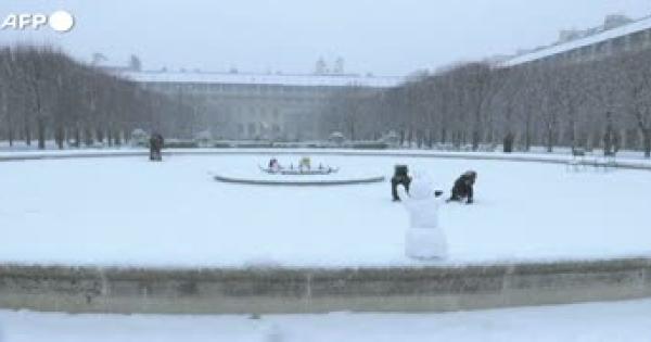 Parigi, la neve imbianca i giardini del Palais-Royal Parigi, la neve imbianca i giardini del Palais-Royal