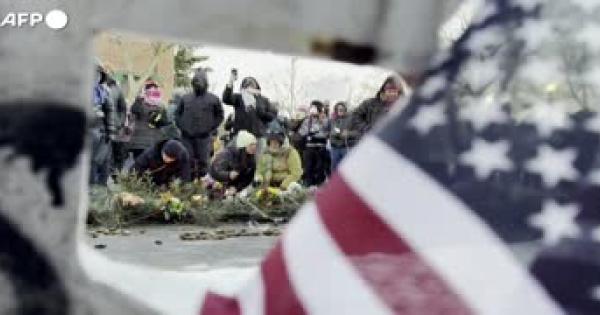 Le persone riunite con fiori e cartelli per ricordare il 37enne ucciso da un agente federale