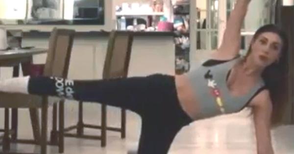 Con una mise davvero super, Belen Rodriguez mette in evidenza le sue forme esplosive. Top corto e leggins aderenti per la showgirl argentina che tra un esercizio e l’altro, si lascia andare anche a un balletto imperdibile davanti alla telecamera con movimenti sinuosi.
