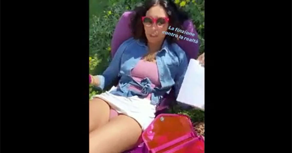 Incidente sexy per Caterina Balivo mentre è distesa sul materassino sul prato in giardino: il movimento delle gambe svela l'intimo con la conduttrice che prova più volte a rimediare tirando giù l'orlo della gonna e cercando di coprirsi con le mani.