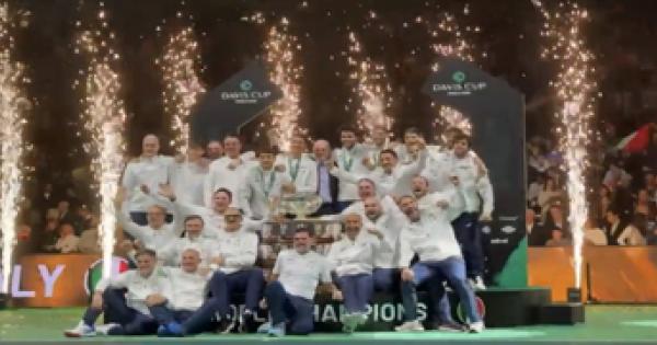 L'Italia vince ancora la Coppa Davis, l'esultanza azzurra sul podio L'Italia vince ancora la Coppa Davis, l'esultanza azzurra sul podio