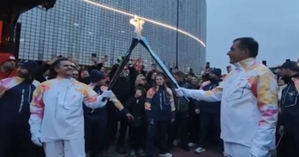 Il viaggio dei tedofori che si avvicinano al braciere