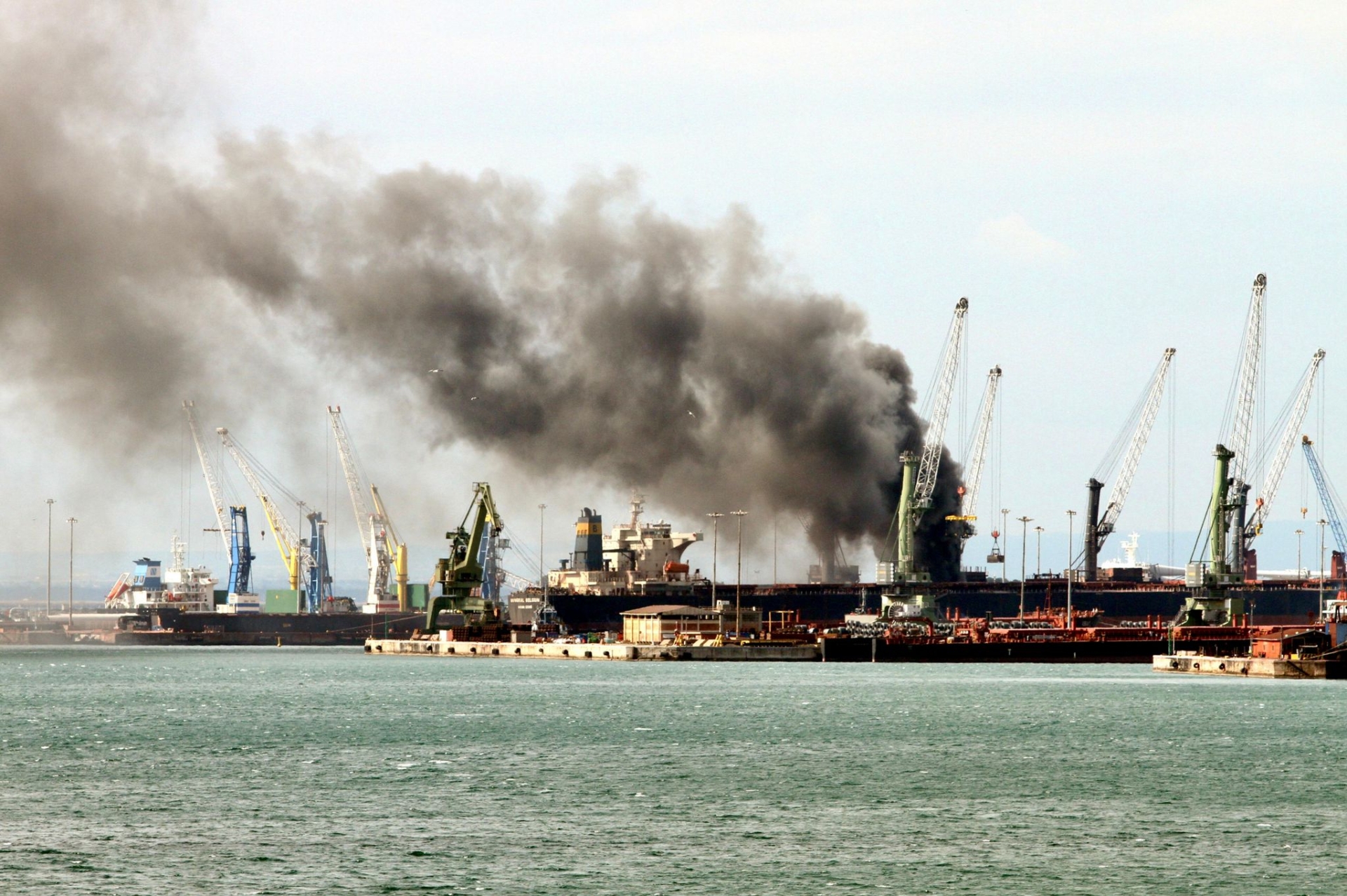 TARANTO - Nella tarda mattinata di oggi si è verificato un incendio che ha interessato una gru di recente installazione, in uso all’azienda nell’area portuale dello stabilimento ex Ilva di Taranto, al quarto sporgente. Acciaierie d’Italia spiega in una nota che «l'incendio è stato immediatamente posto sotto controllo e non risultano danni a persone. L’azienda effettuerà tutti gli accertamenti del caso sulle cause dell’incendio». Sul posto sono intervenute squadre dei vigili del fuoco in servizio al porto di Taranto. Si è sprigionata una colonna di fumo nero visibile nitidamente dalla città. (Foto Massimo Todaro)