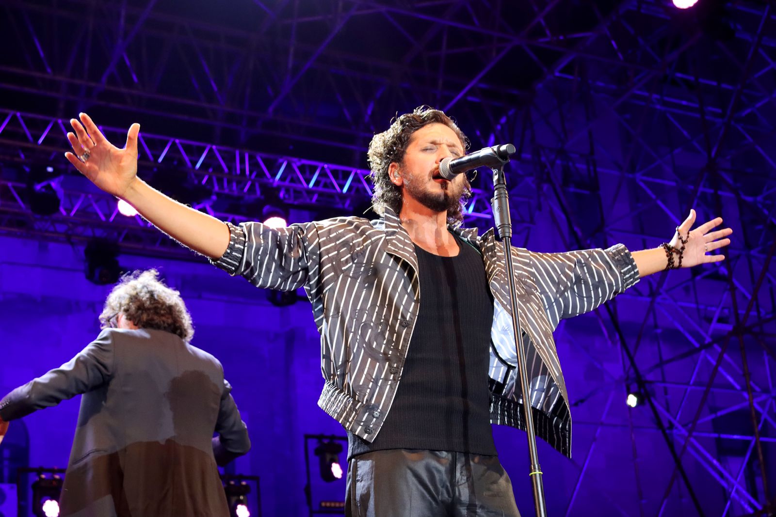 Ermal Meta, accompagnato dall’orchestra diretta per l’occasione dal maestro Piero Romano, che è anche direttore artistico, conferma tutto il suo talento. L’accoglienza è calorosa e lui non si risparmia. Perché, afferma, l’affetto e la partecipazione del pubblico non sono qualcosa di scontato. Parte con il brano “Dall’alba al tramonto”, secondo estratto dal terzo album “Non abbiamo armi”. Poi “Un milione di cose da dirti”, in gara a Sanremo 2021; “Uno” dall’album “Tribù urbana”, “Schegge”, canzone d'amore dedicata alla musica che sa stringere senza mai incatenare; “Piccola anima”, brano del 2017 composto in studio con la collaborazione di Elisa; “Vietato morire”, pezzo struggente e autobiografico che racconta delle violenze subito da piccolo dal padre e dal grandissimo salvifico amore della madre, che lo ha portato ad essere un uomo diverso.