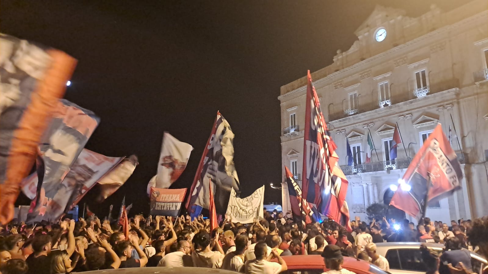 La manifestazione è partita poco dopo le ore 20 dalla centralissima piazza Immacolata e ora un migliaio di tifosi sta sventolando le bandiere rossoblu in via D’Aquino all’altezza della chiesa del Carmine. I tanti turisti presenti in città in questo periodo pre ferragostano guardano con stupore, non comprendendone appieno le ragioni, questa protesta che si svolge con il rullo dei tamburi che l’accompagnamento e con l’odore acre dei fumogeni che, invece, l’avvolge.