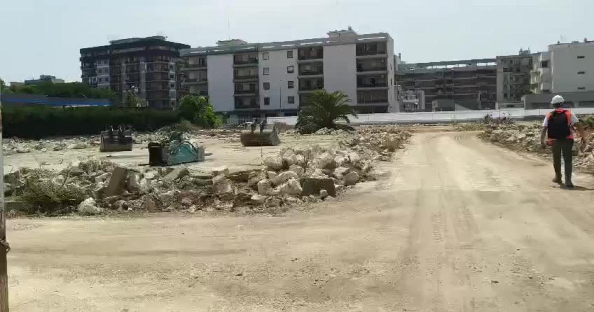 Il cantiere del Magna Grecia, destinato a ospitare i campi da tennis dei Giochi, è ancora in fase di preparazione: l’area è delimitata da recinzioni e animata dalle ruspe.