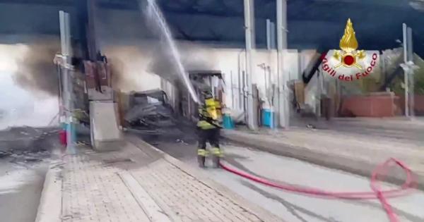 Incendio sulla A21, in fiamme casello autostradale di Brescia Sud Incendio sulla A21, in fiamme casello autostradale di Brescia Sud