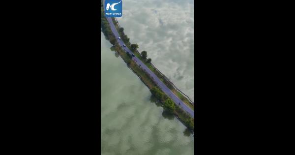 Cina, "Sky Road" sull'acqua, nell'Anhui le auto sembrano scivolare tra le nuvole