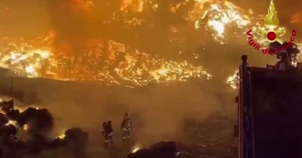 Incendio in un impianto di trattamento rifiuti di plastica nel Palermitano