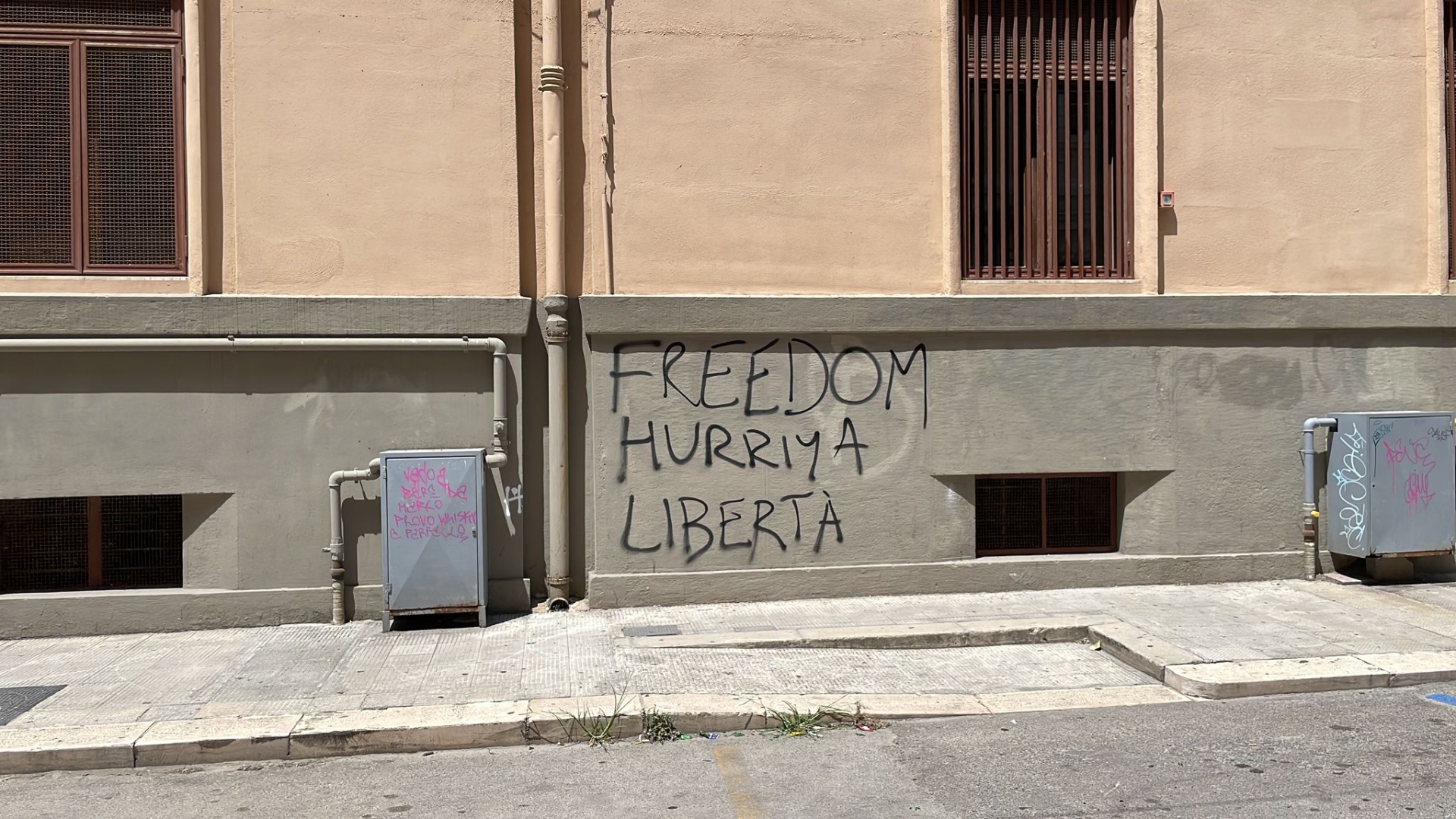 Il passaggio di chi poco ha a che fare con l'idea della manifestazione si nota in altri punti della città, imbrattati altrettanto con le scritte, come può vedersi nelle foto.