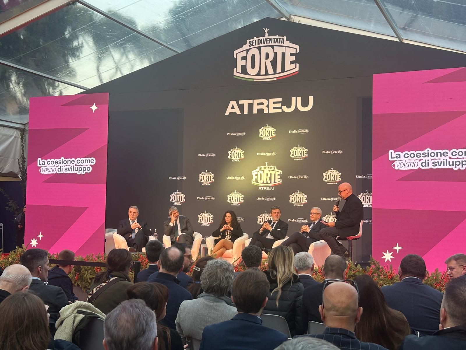 A Roma nella convention di Atreju, manifestazione organizzata da Fratelli d’Italia, nella sessione sul tema «La coesione come volano di sviluppo» si sono confrontati tra i tanti ospiti anche Roberto Fico, neo governatore della Campania e il minsitro Tommaso Foti per gli affari europei, il Sud, le politiche di coesione e per il Pnrr.