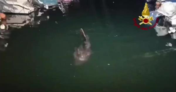I Vigili del fuoco hanno prima allontanato il grosso pesce dalla banchina e successivamente lo hanno guidato verso l’uscita del porto.